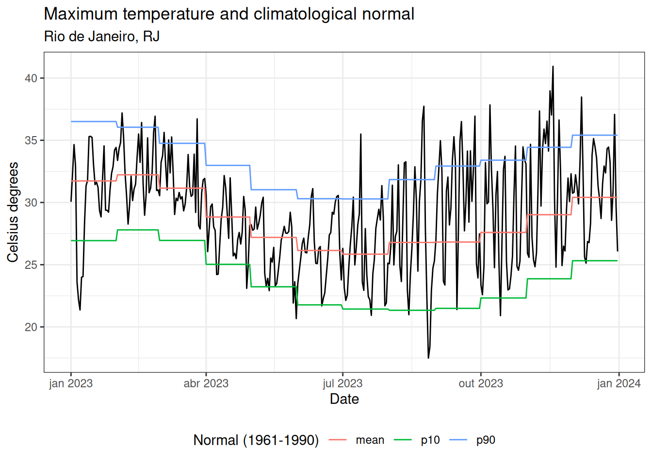 A climatological normal can be computed with data from different sources, including remote sensing sensors and “area averages or points in gridded datasets” (WMO 2017). Some gridded climatological datasets are available for the Brazilian territory, including the ERA5-Land from Copernicus (Muñoz-Sabater et al. 2021) and the BR-DWGD dataset (Xavier et al. 2022), offering several climatological indicators for a long time range, and continuously updates.