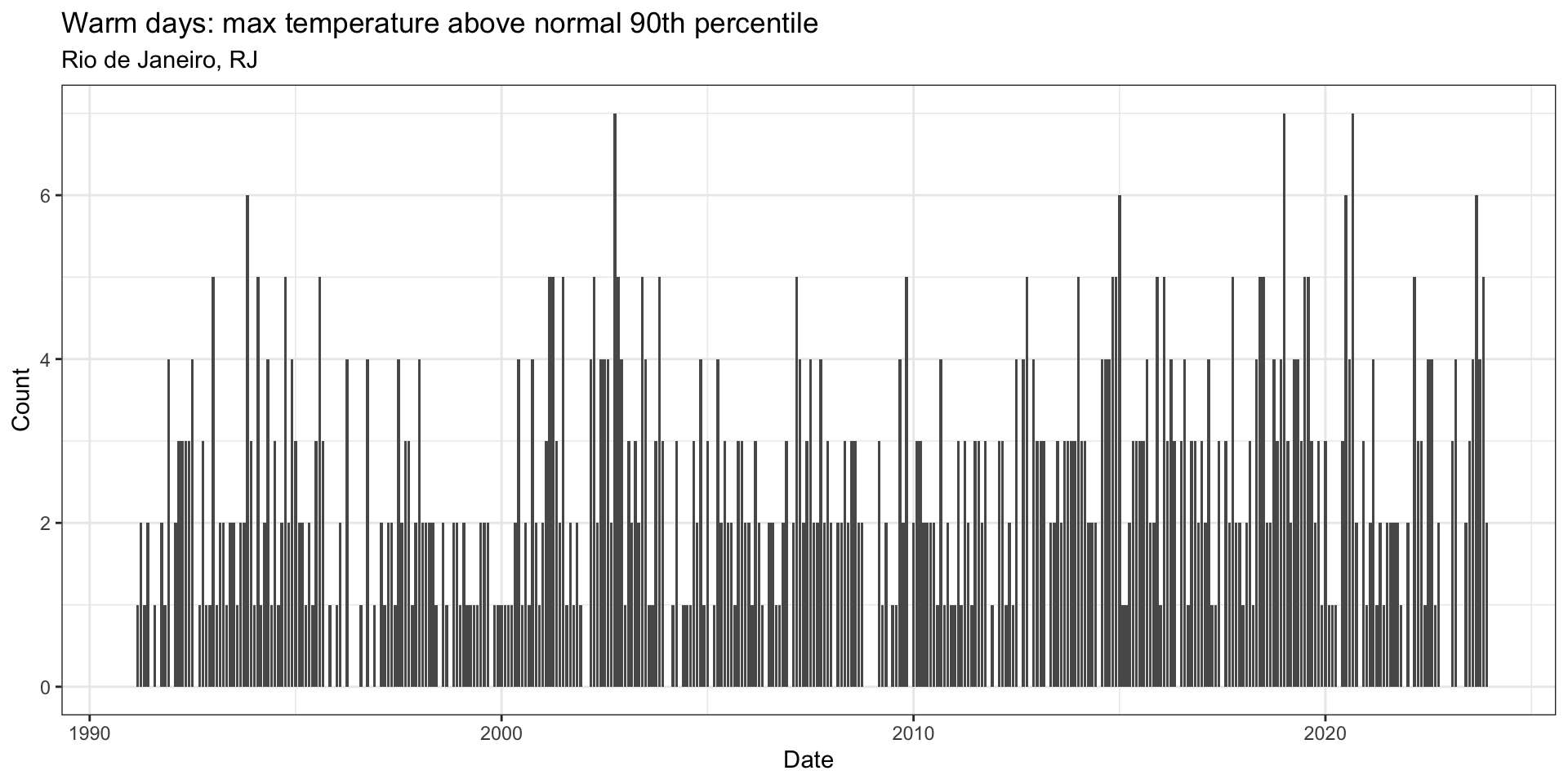 - Heat waves, cold spells, count of warm days, count of dry and wet days, and others